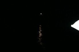 知り合いの人が船の右舷に月が出ていると教えてくれた。月は水面からわずかに離れた位置