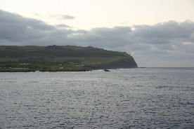 私達は最初に鳥人儀礼が行われたというオロンゴ岬に行った。この岬の沖合には小さな島