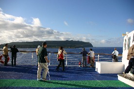 着替えを済ませ上甲板の船首デッキに出た頃は、薄明かりの中に島影がくっきりと見え始め