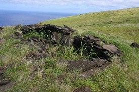 したオロンゴ岬での石を積み上げて作った穴蔵のようなものが住まいであったようだ。自然に