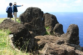 上陸した海岸近くにも幾つかのモアイ像が立っていた。船から見えていたモアイだ。(写真右)