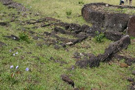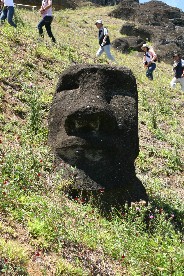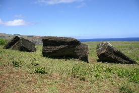 されているようだ。これらほとんどのモアイが顔を地面に向けて倒されているようだ。