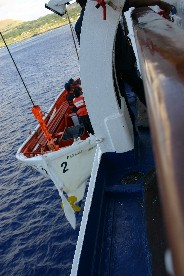 私達は訓練以外では身につけたことのない救命胴衣を着てボートに飛び乗った。(写真右)