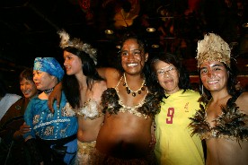 踊りの後は交流会になった。ラパ・ヌイの人達に囲まれて写真撮影。