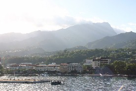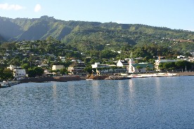 いよいよ入港、ゴーギャンの愛した島タヒチが目の前にあった。(写真説明)