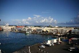 私がデッキに上がったり下りたりを繰り返している内に船はパペーテの港に着いた。ここで家