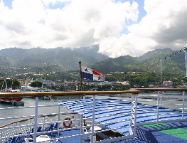 戻りボーディングカードを持って船外に出てみた。タヒチ上陸の第一歩であった。家内は姉妹と