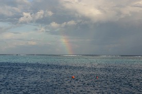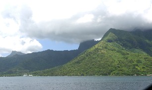 空には雲が懸かっていた。しかし、気になるようなお天気ではなかった。さあ、待ちに待ったタヒチだ。(写真左)
