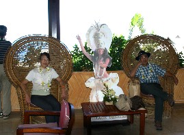 ホテルのサービスカウンター上の彫刻。(写真右)