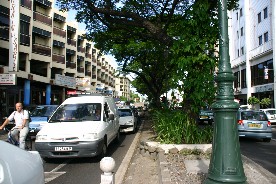 歩いたとは言っても連絡船から下りてほんの少しだけ。ガジュマルのようなこんな木も、そしてこんな通りも。(写真左右)