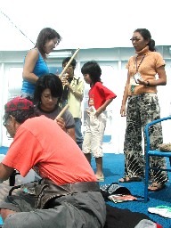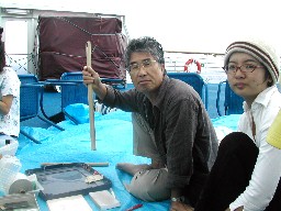 ABOさん達は強い風が吹く後方の甲板の上にブルーシートを敷いて作っていた。使っている