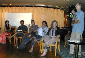 水先案内人(講師、演奏家)の紹介があり、引き続いて挨拶があり、担当のピースボートスタッフとCC(通訳)の紹介があった。