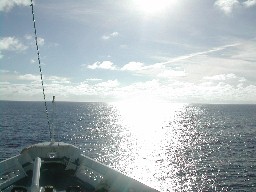向かっていた。翌朝、船のデッキへ出てみると空一面に雲が広がっていた。水平線上の厚い雲