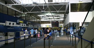 手荷物の検査を受けて出発ロビーへ(写真右)