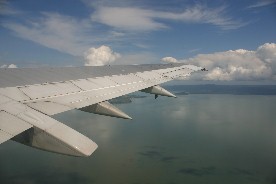 やがてジェット機は高度を下げ着陸態勢に入った(写真左、右)