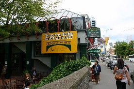 レストラン前の大きな道路を挟んで向かい側は公園になっていた。公園の中にあったトーテンポールらしき彫刻(写真右)