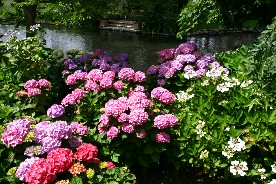 園内には季節の花が咲き乱れていた。右はアジサイ(写真左、右)