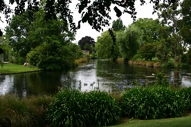 川と巨木の多い公園、これはクライストチャーチ市内では色んなところで見かける景色だ(写真上二枚)