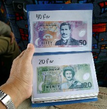 現地通貨(紙幣)下の方の図柄はヒマラヤの世界初登頂に成功したこの国のヒーローであるヒラリー卿(写真左)