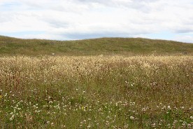 東側は上の写真で見るようになだらかな高原状の山々が連なり多くは羊などの牧草地になっている。(上の写真)