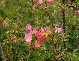 プカキ湖の周辺で見かけた植物、右の花はハマナシの花のようだ(上の写真)