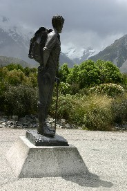 そのマウントクックでヒマラヤ登山の訓練をしたというヒラリー卿の銅像がマウントクックの方を向いて立っていた(写真右)