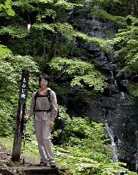 私達は熊押し滝を目指しました。滝の流れには小さなサンショウウオがいました。滝でしばらく休んだ後、来た道