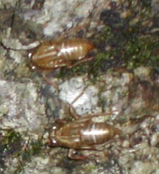 交尾中のヒル 春ゼミの抜け殻 トンボ(名前は未調査)