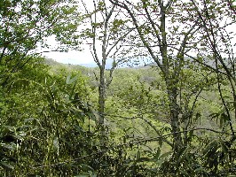 千軒平の山頂にて(遠く大山など雄大な景色を眺めながら弁当を食べた) 私達は、ここで少し遅い昼食をとり下山した。下りに選んだ山道は、とても急な坂道だった。従って、登り道