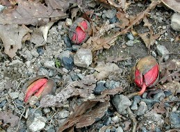山頂付近にもたくさんショウジョウバカマがあった。 下山途中見かけたドングリの芽吹き