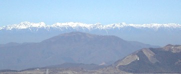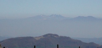 南アルプスから目を転ずると中央アルプス、そして木曽の御嶽山が孤高の姿を見せます。 ![]()