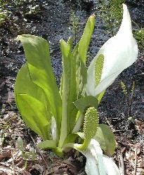 一周してもさして時間はかかりません。山の麓には小川があり、その下に水芭蕉が咲いていました。すでに最盛期は
