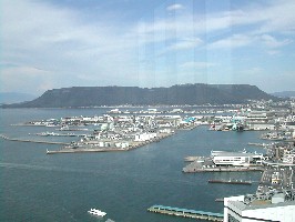 シンボルタワーの最上階からは360度の景色が楽しめる。 そこから東方面に屋島がある。ごらんのように屋島と言うだけあって見事なまでに屋根の形をしている。 ![]()