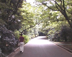 科学技術館を出て武道館に続く公園、緑がいっぱいだ 早々にここを出て、周辺の公園を抜け武道館の前に出る。明日は終戦記念日とのことで、