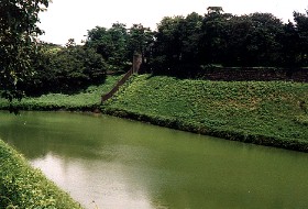 堀の水は循環が悪いせいか、あおこの発生で濃い緑色をしている。