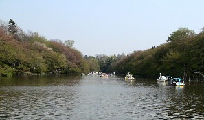 古い公園だと言うことは、これらの大木を見れば分かる。何と言っても春は桜、秋は紅葉だろうか。 広大な井の頭池には散ったばかりの桜の花びらがたくさん浮いていた。 ![]()