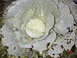 左の写真の頃は虫の被害もなく喜んでいたところ 少し油断したら、すっかり虫にやられてしまったキャベツ