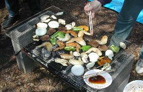 この日もあちこちで焼き肉が始まっていました。私達も人数に合わせて二カ所コンロを作りました。もちろん炭火焼き