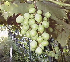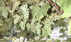 袋掛け前の左(デラウエア)と右(巨峰) 2000年7月中旬
