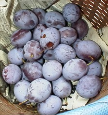 リンゴの「津軽」は少し粉っぽい感じがして収穫には少し早いようだ。プルーンは濃い紫色に