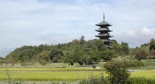 備中国分寺と国分寺の五重塔 私達一行は、この日の目的地を吉備津神社と決めて歩き始めました。道の要所要所には案内板が立っており、