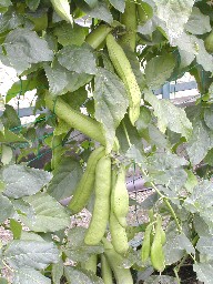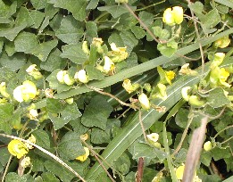 左からヤナギハナガサ、民家の畑で栽培されていたナタマメ、自然は豊かでタニシもいた ![]()