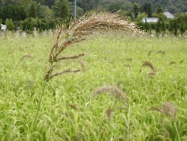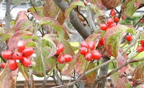 吉備津駅のアメリカハナミズキの真っ赤な実、田んぼの中でひときわ目立つヒエ 2002年9月17日掲載