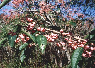 園内の銘木 まゆみ 1999.10.24 私達は、すずのこ平で少し早い昼食を取りました。風もなく、暑くもなく、寒くもない、穏やかな日曜日です。
