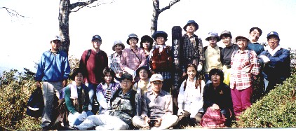 早速、登山準備を整え、柔軟体操をして体をほぐします。今日は私達にとっては、初めてのコース「すずのこ平」を