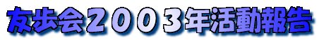 友歩会初歩き2003児島の竜王山に登りました。素晴らしい展望に早春を満喫しました。 友歩会2003お花見会今年も賑やかにお花見会が開かれました。楽しいことなら何でもやろうという会です。 . . . . . .