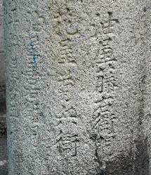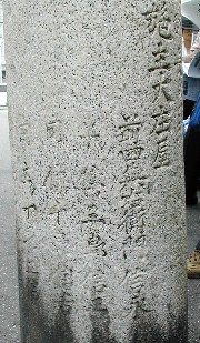 いる。この鳥居の東の柱と西の柱には、それぞれ鳥居を立てた人の名前が記されている。東の柱には現在の