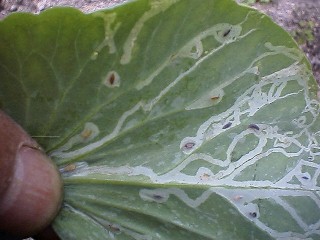 (ハモグリガは蜜柑などの柔らかい葉に