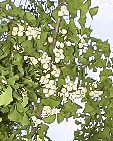 イチョウには雄の木と雌の木があります。従って、実を結ぶのは雌木の方で大半の木は雄木です。
