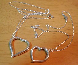 左の写真は私と家内の作品、右の写真は私の作品を拡大したもの ・今回はハート形のネックレス飾りを作りました。